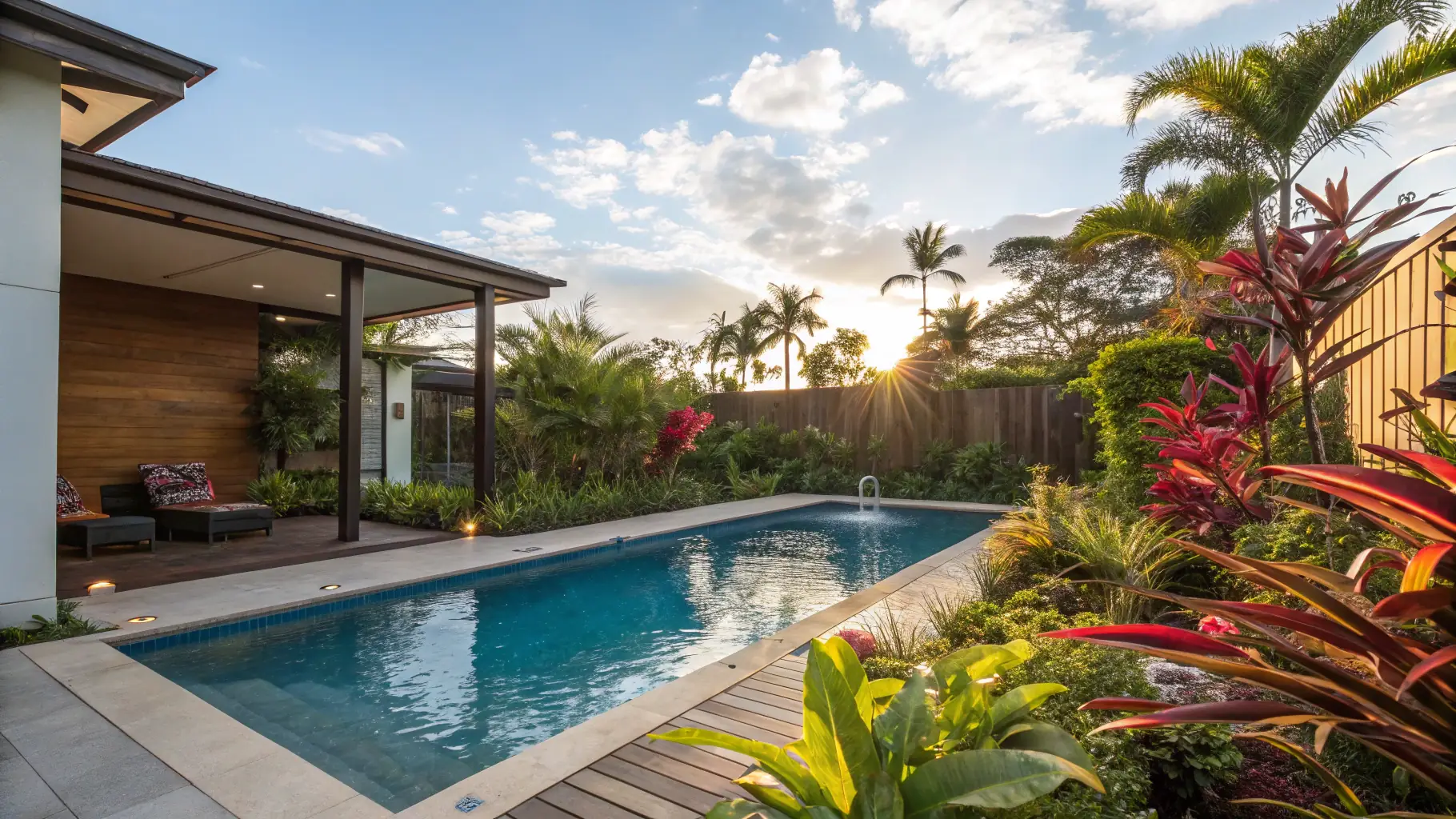 Transform your backyard into a luxurious outdoor oasis with a custom pool, beautiful landscaping, and a perfect space for relaxation and entertaining.